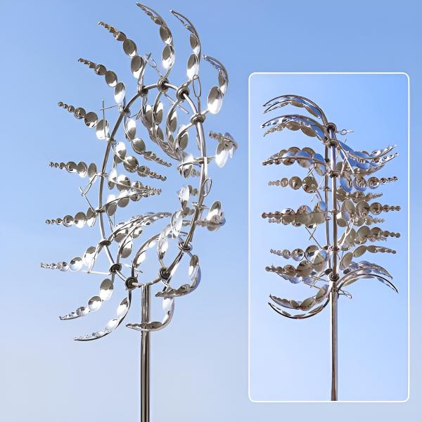 🌬️ Дизайнът му с две лопатки създава хипнотизираща картина, като същевременно издържа на ветровити дни, идеален за безпроблемна външна украса.