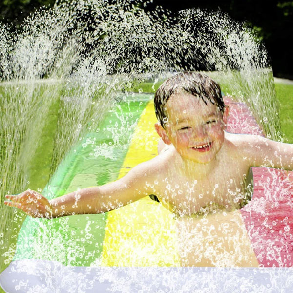 Водната пързалка с разпръсквателна система е отличен продукт за забавление на открито.