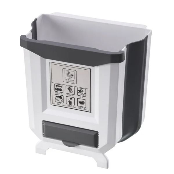 Закачете това удобно кошче на кухненското си чекмедже или вратата на шкафа, за да съхранявате отпадъците и да поддържате ред по време на готвене.