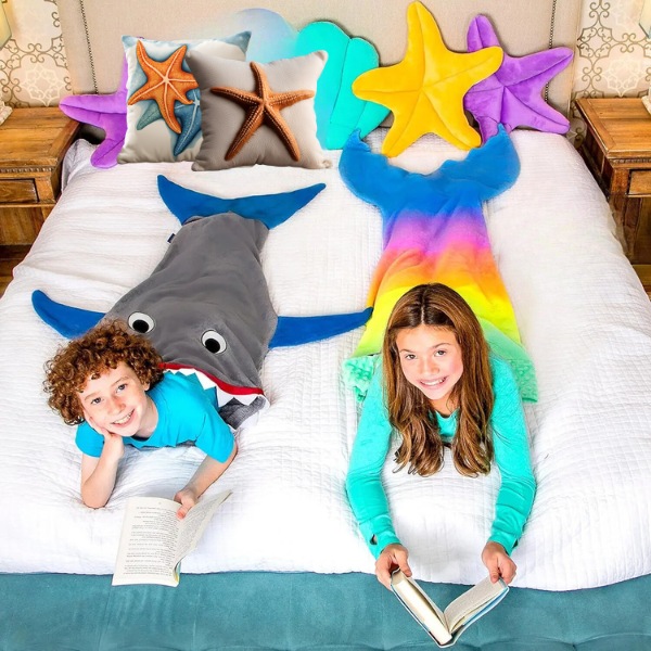 Изберете между одеяло с опашка на акула или с опашка на русалка. Идеално за енергични деца, които обичат да играят и да се преструват, това одеяло задоволява дивата им страна, като същевременно ги топли