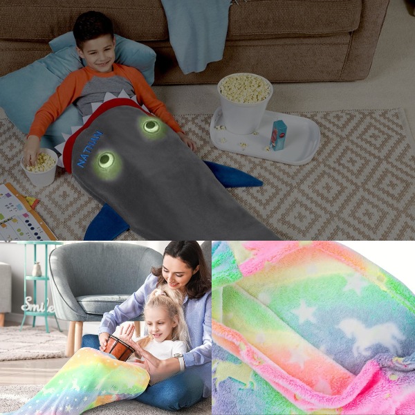 Мекият, висококачествен фланелен полар държи децата на топло, докато си почиват след училище или се прибират за през нощта. То е идеално за сгушване на дивана, докато гледате анимационни филми, или за да се стоплите през студените нощи. Децата ви ще се забавляват с радост, докато се завиват в опашката на акула или русалка.