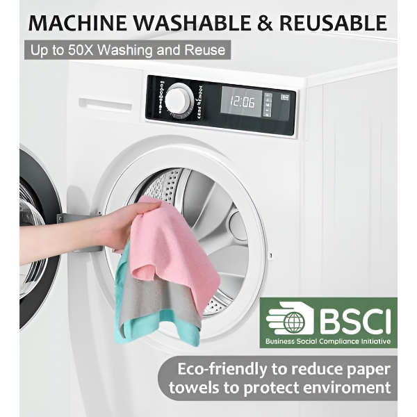 Пере се и може да се използва многократно, като по този начин намалява нуждата от еднократни хартиени кърпи и щади околната среда.