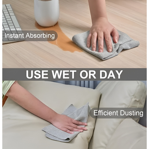 Висококачествената микрофибърна кърпа абсорбира вода, масла, прах и петна, оставяйки повърхностите безупречно чисти и без следи.